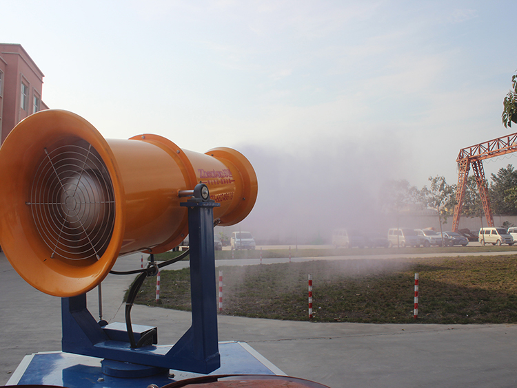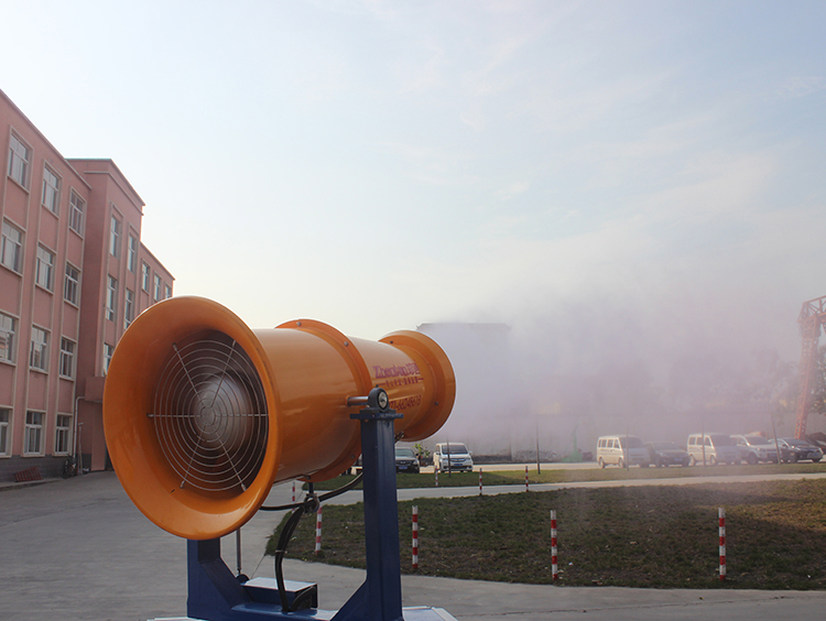 廣東梅州世鵬機(jī)械廠購(gòu)買(mǎi)30米霧炮機(jī)用于廠房降溫消毒試機(jī)現(xiàn)場(chǎng)