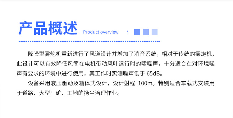 產(chǎn)品特點(diǎn):80米降噪抑塵霧炮機(jī)增加了消音系統(tǒng),相對于傳統(tǒng)的霧炮機(jī),此設(shè)計(jì)可以有效降低風(fēng)筒在電機(jī)帶動風(fēng)葉運(yùn)行時(shí)的嘯噪聲,十分適合在對環(huán)境噪聲有要求的環(huán)境中進(jìn)行使用,其工作時(shí)實(shí)測噪聲低于65dB。
