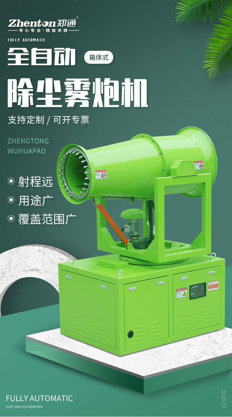 產品特點:固定式全自動霧炮機采用箱體式結構,安裝方便;除塵效果好,覆蓋范圍廣,工作效率高。