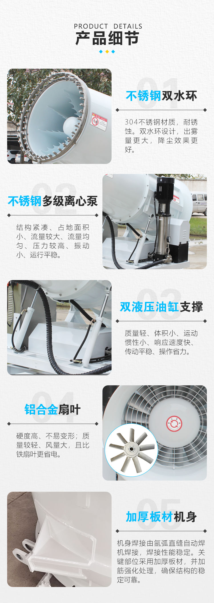 產品特點:80米降塵霧炮機射程遠、覆蓋范圍廣;多角度調節、無水珠全程霧引、安裝方式靈活多變。