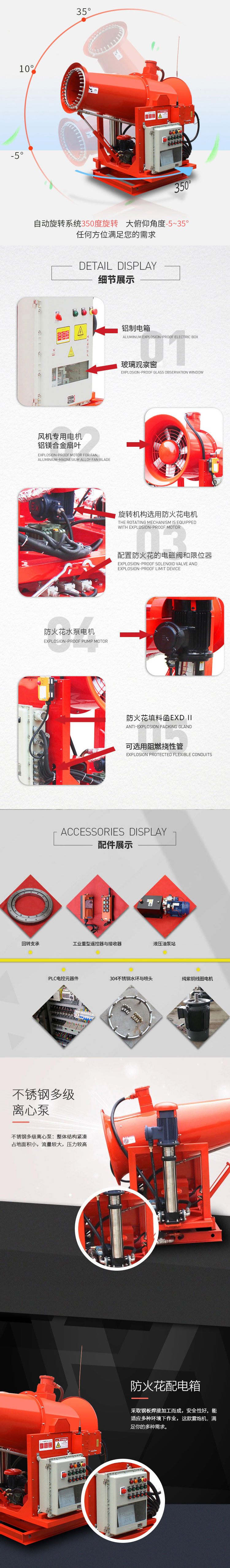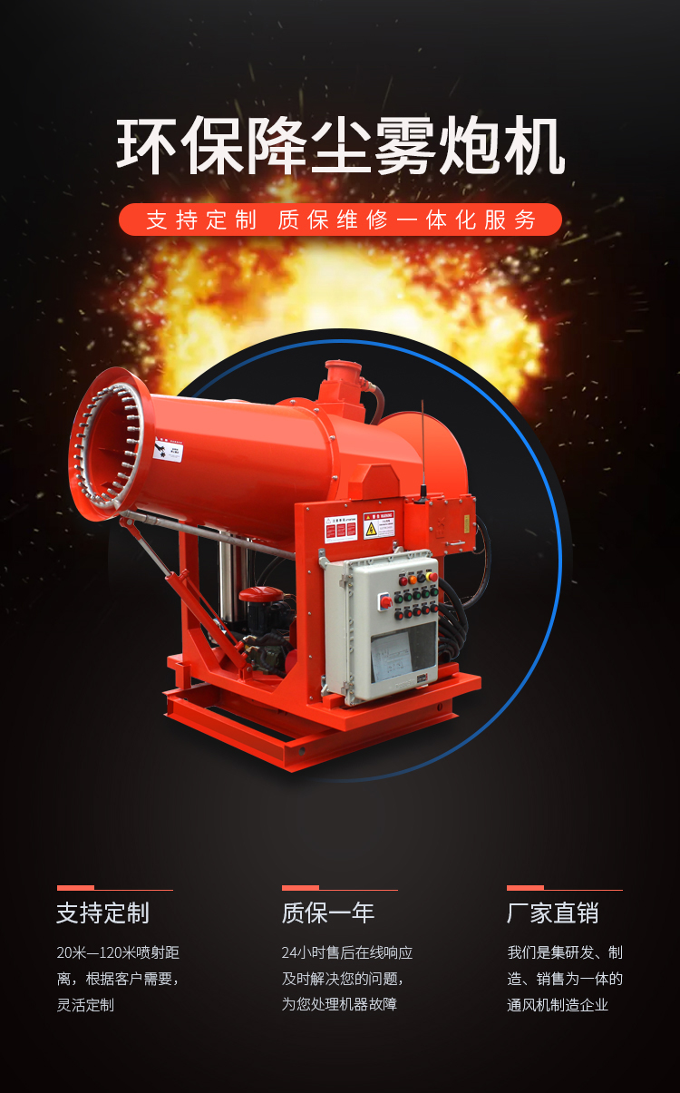 產(chǎn)品特點(diǎn):煤場降塵霧炮機(jī)采用防爆型配電箱、風(fēng)機(jī)專用防爆電機(jī),可定制實(shí)現(xiàn)整機(jī)防爆,適用于煤礦、礦場等特殊環(huán)境,使用安全可靠。