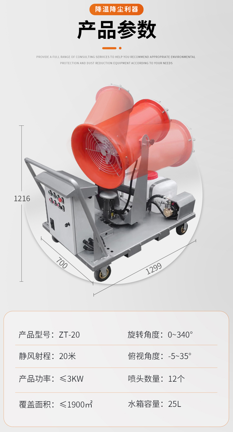 主要用途:適用于城市拆遷工地、冶金鋼鐵企業、采礦區域、煤化工企業、水泥廠、火力發電廠、建筑工地、物料和礦產品露天堆放廠、混凝土處理廠、垃圾堆放場、垃圾焚燒廠、沙廠、干式物料倉庫、露天爆破區域。