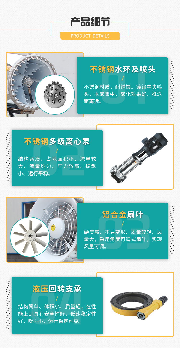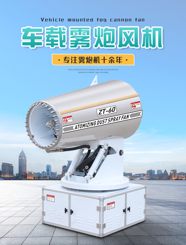 產品特點:60米車載霧炮風機采用鏡面不銹鋼外殼,耐銹蝕易清潔,線性噴霧,射程遠覆蓋范圍廣。