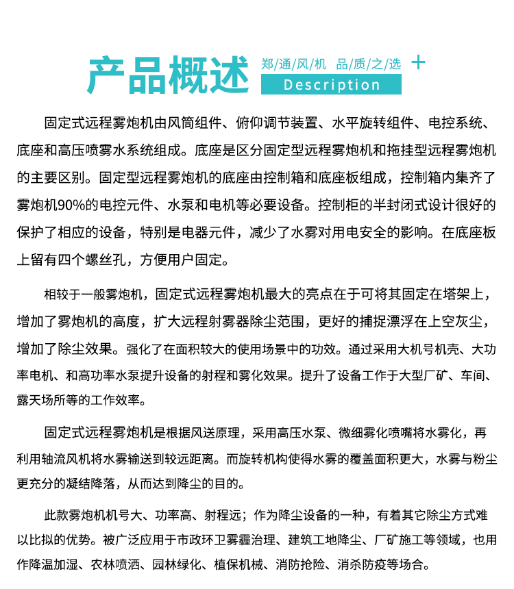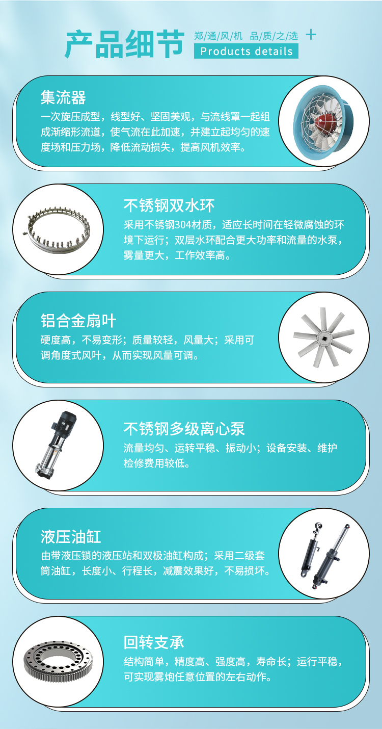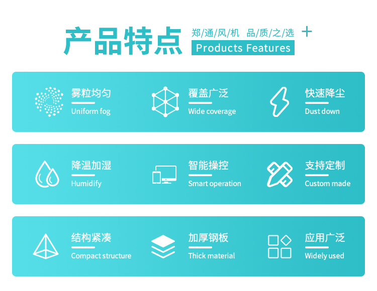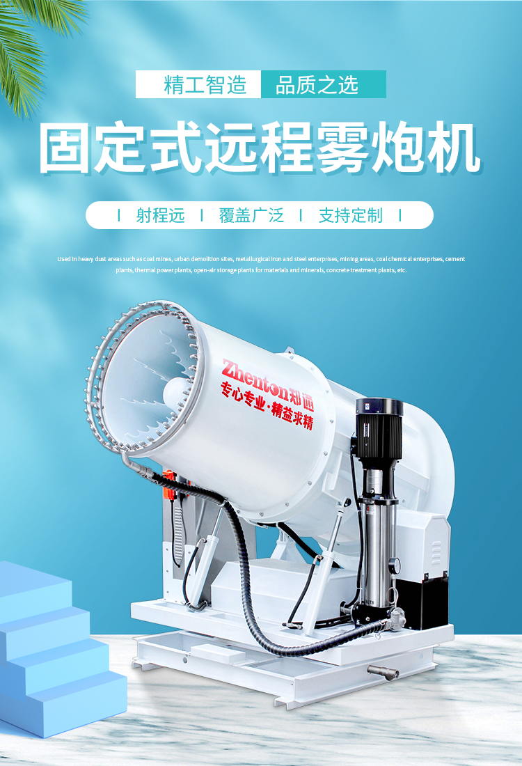 產(chǎn)品特點(diǎn):90米遠(yuǎn)程霧炮機(jī)動力強(qiáng)、射程遠(yuǎn)、覆蓋廣泛、可實(shí)現(xiàn)精量噴霧;工作效能高、噴霧加濕更快,能迅速降溫抑塵;配件驅(qū)動可靈活定制,操作便捷,靈活方便。