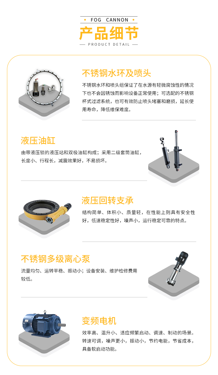 主要用途:用于煤礦場、城市拆遷工地、冶金鋼鐵企業、采礦區域、煤化工企業、水泥廠、火力發電廠、物料和礦產品露天堆放廠、混凝土處理廠、垃圾堆放場、垃圾焚燒廠、沙廠、干式物料倉庫、露天爆破、重度粉塵區域。