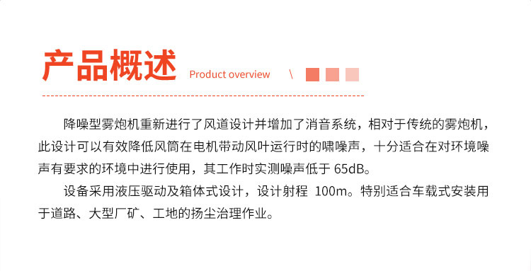 產(chǎn)品特點(diǎn):降噪型液壓霧炮機(jī)增加了消音系統(tǒng),相對(duì)于傳統(tǒng)的霧炮機(jī),此設(shè)計(jì)可以有效降低風(fēng)筒在電機(jī)帶動(dòng)風(fēng)葉運(yùn)行時(shí)的嘯噪聲,十分適合在對(duì)環(huán)境噪聲有要求的環(huán)境中進(jìn)行使用,其工作時(shí)實(shí)測噪聲低于65dB。