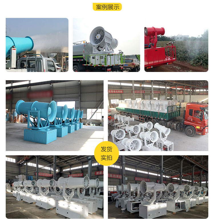 產品特點:車載式降塵霧炮機采用箱體式設計,造型美觀,也較防止灰塵進入精密部件內部,延長使用壽命。