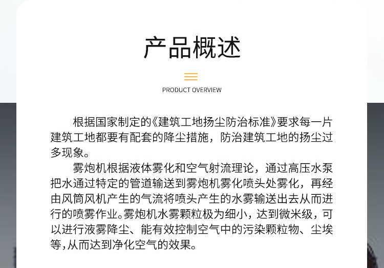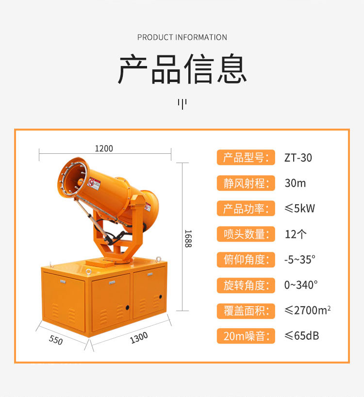 主要用途:建筑工地 煤場,工業除塵,農業,園林綠化等飛機場、高速公路、車站、碼頭、公共場所、運動場地、炎熱場地等降塵保濕降溫消毒。