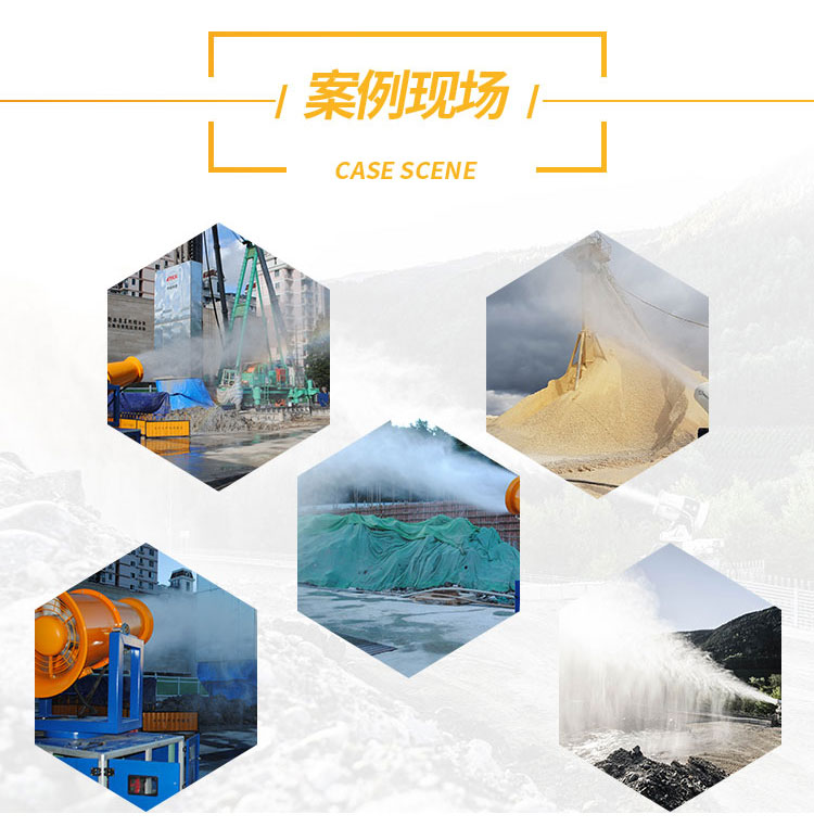 主要用途:適用于城市拆遷工地、冶金鋼鐵企業、采礦區域、煤化工企業、水泥廠、火力發電廠、建筑工地、物料和礦產品露天堆放廠、混凝土處理廠、垃圾堆放場、垃圾焚燒廠、沙廠、干式物料倉庫、露天爆破、重度粉塵區域。