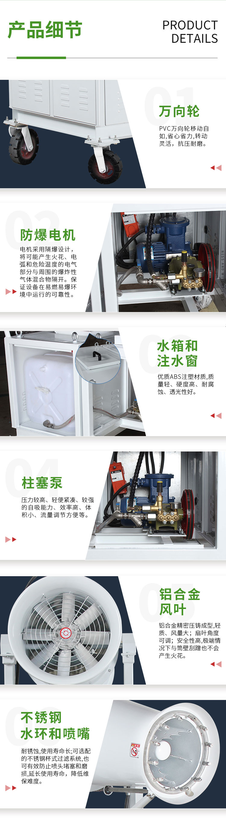 產(chǎn)品特點(diǎn):30米移動式噴霧風(fēng)機(jī)這款產(chǎn)品具有一鍵啟動功能,能起到快速降塵、降溫的作用;移動便捷,方便維修。