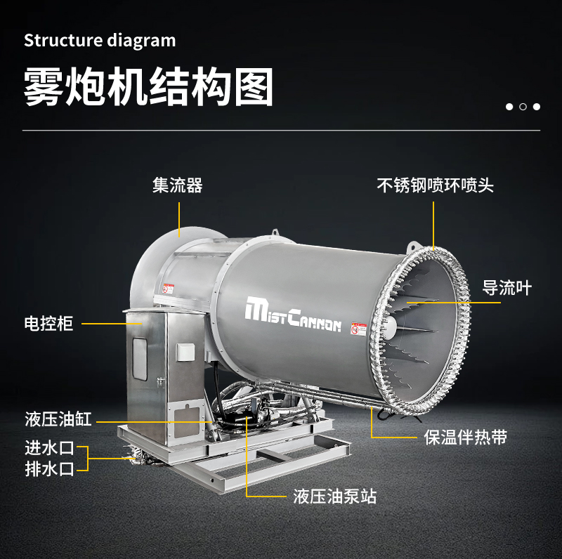 產品特點:130米霧炮機是一款專為煤場等大型粉塵作業環境設計的高效降塵設備。其采用高壓噴霧技術,將水霧化成微米級細小顆粒,通過大功率風機送至130米超遠距離,覆蓋范圍廣、穿透性強。設備配備全自動控制系統,支持水平350度旋轉及俯仰角度調節,可靈活應對煤場不同區域的揚塵問題,實現精準抑塵。